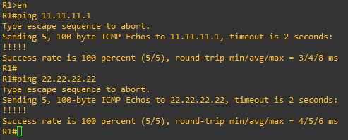Both R1 and R2 have a static 0.0.0.0/0 route pointing to the IP of the connected interfaces on the ISP router – we should be able to ping our default gateway as well as the outside IP of the remote router: