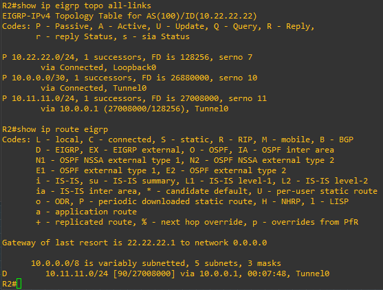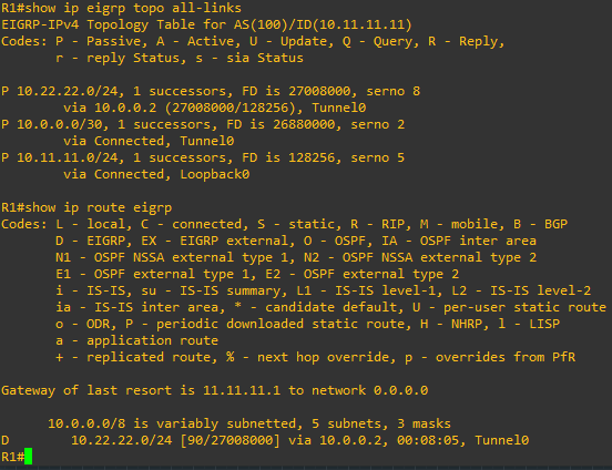 GREat, looks like our basic tunnel is up and we have formed an EIGRP adjacency! Let’s also quickly just check that we are indeed exchanging routes:
